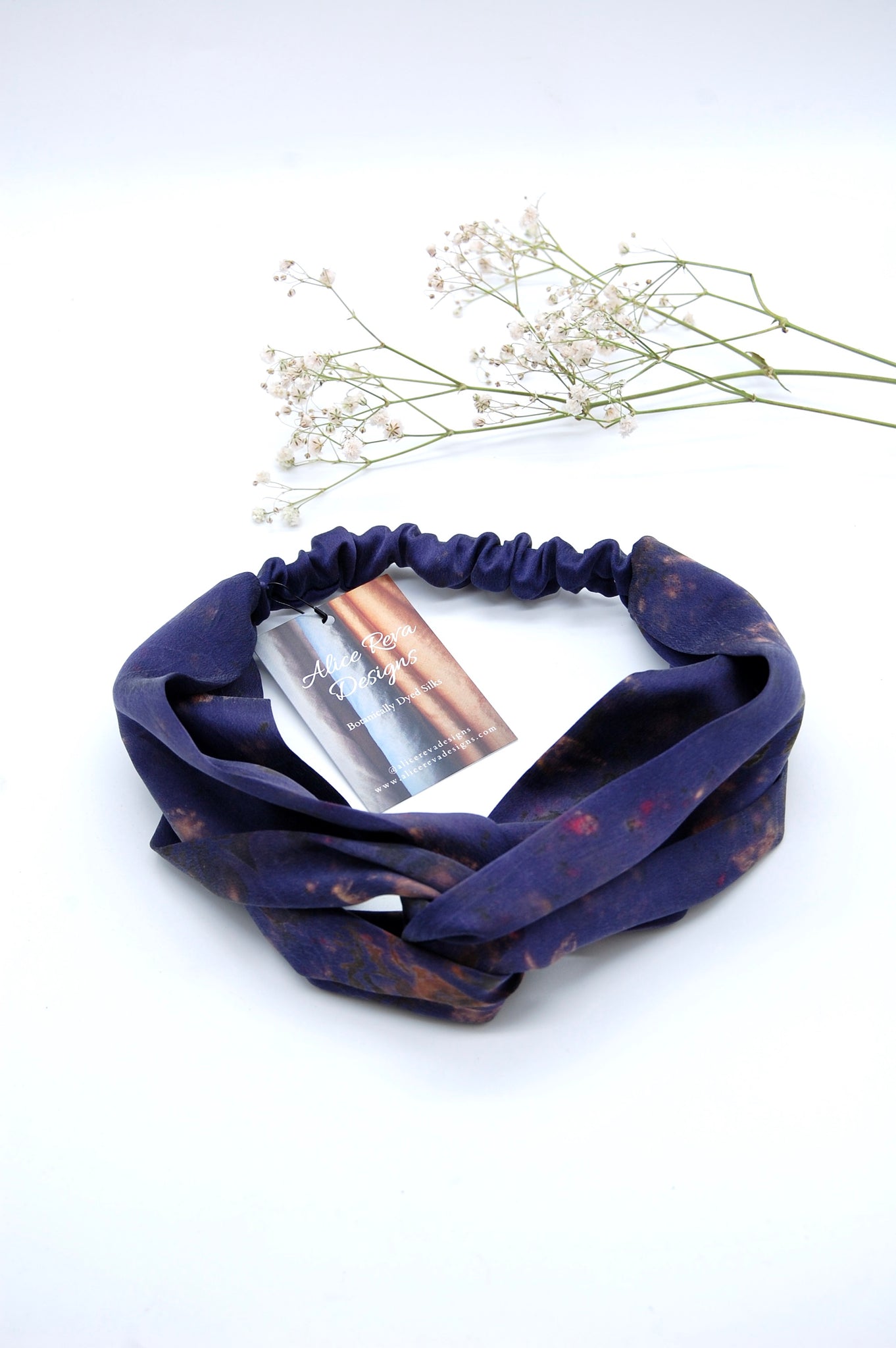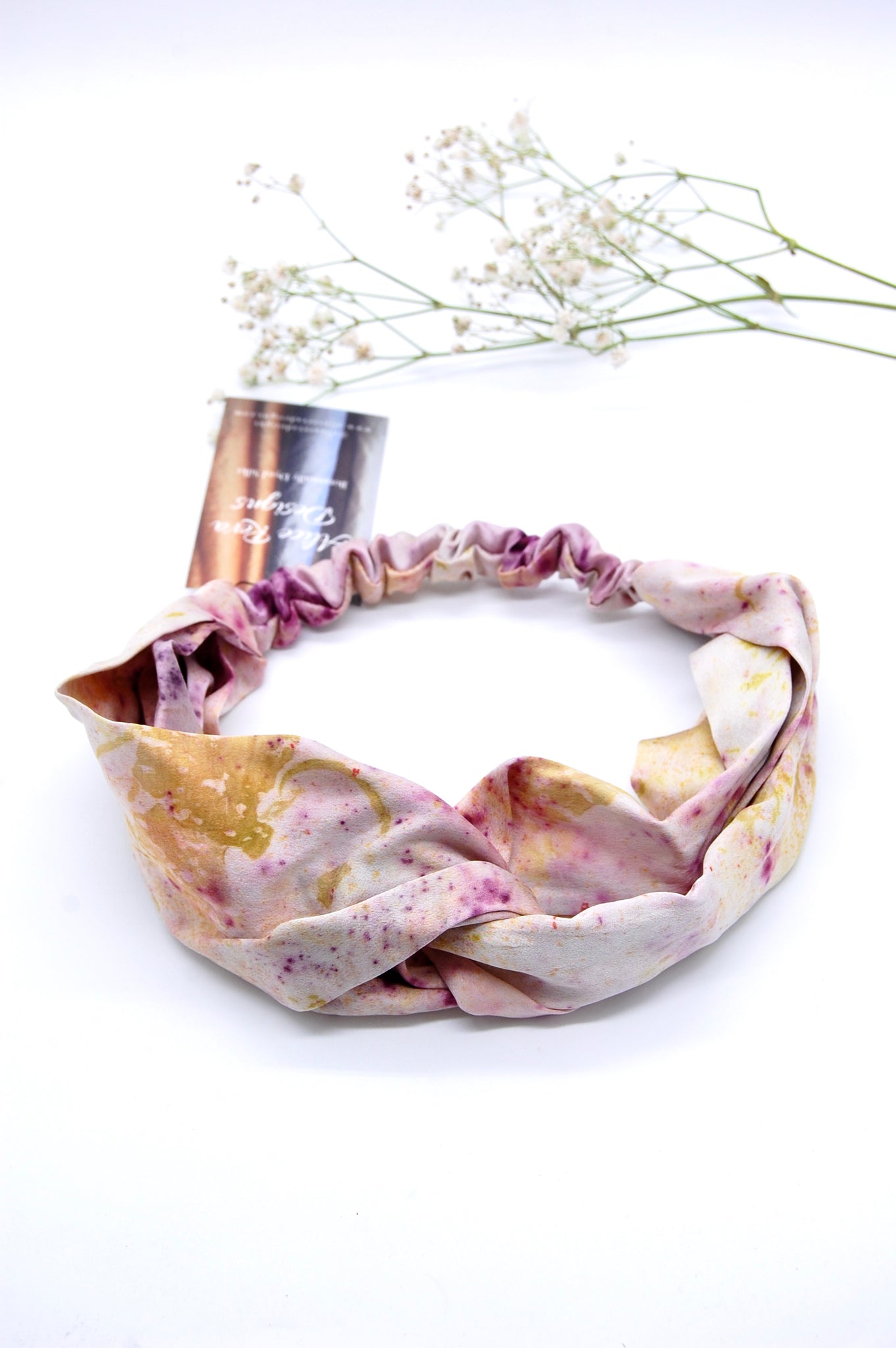 Natural bundle dying is a slow but wonderful process. Each headband is hand dyed with plants, bugs and minerals which are carefully placed on silk yardage, tightly wrapped, steamed and left to cure for over 24 hours! So many steps to produce the natural colors you see here. This creates a completely unique piece, just for you!!